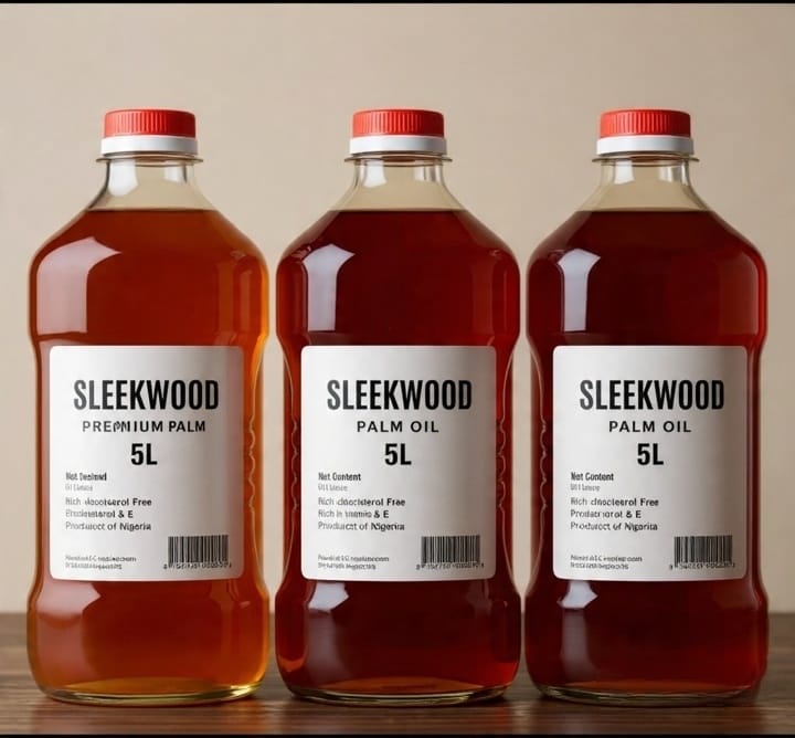 Sleekwood Palm Oil is freshly processed from carefully selected palm fruits, giving it a rich red colour and authentic African taste. Clean, pure, and neatly packaged to maintain freshness and quality.